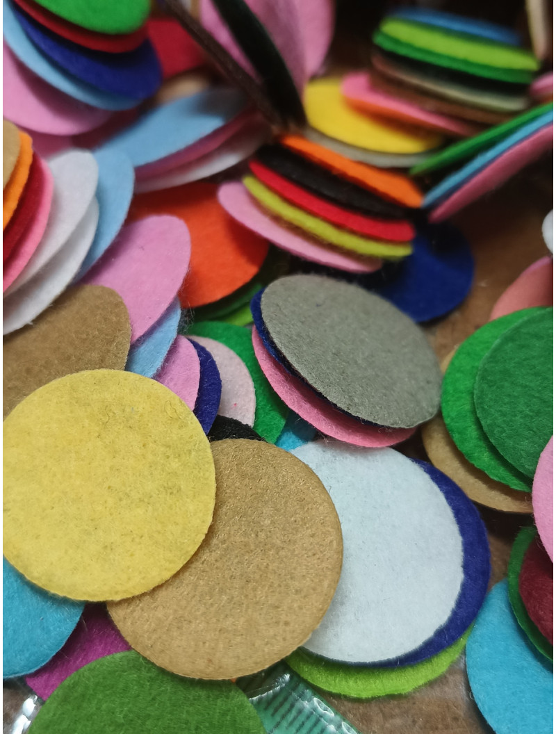 Фетрові круги (власне виробництво). В пакованні — 50 шт. Колір мікс. Розмір -2,5 см.