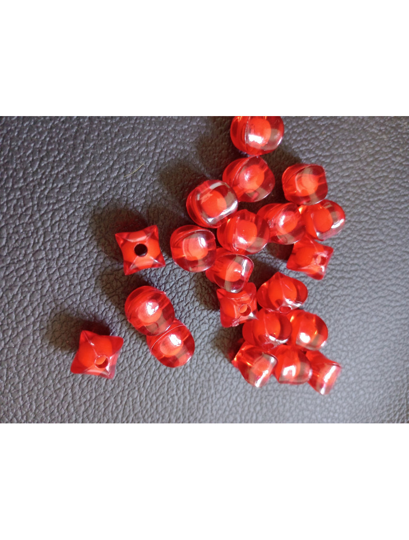 Акрилові намистини / 10 мм / Квадратні червоні з серединкою/10 грам (приб.22 шт)
