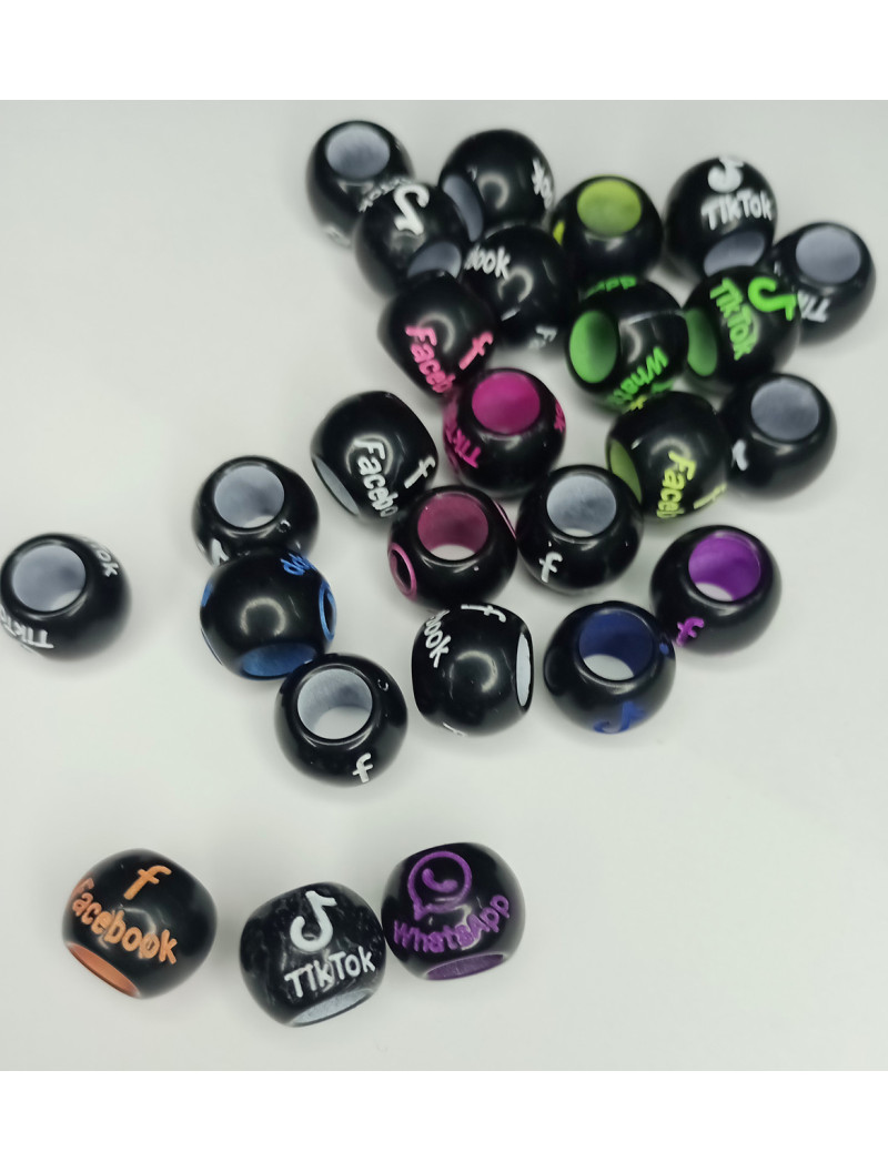 Акрилові намистини Tik-Tok, Facebook, WhatsApp. Паковання 10 грамів (прим.18 шт.) Мікс чорний.