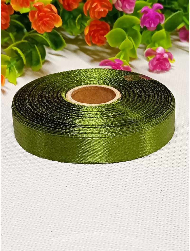 Атласна стрічка/ 1.2 см/23 метри/оливка