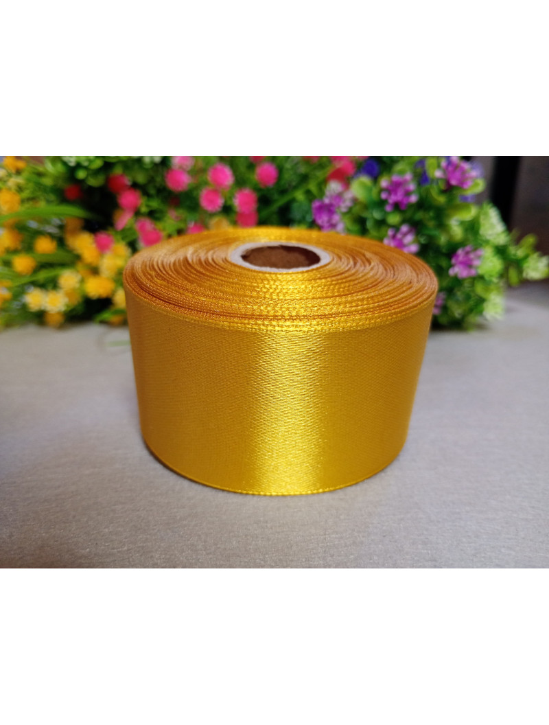 Атласна стрічка 4 см. Довжина рулону 23 м/ золото