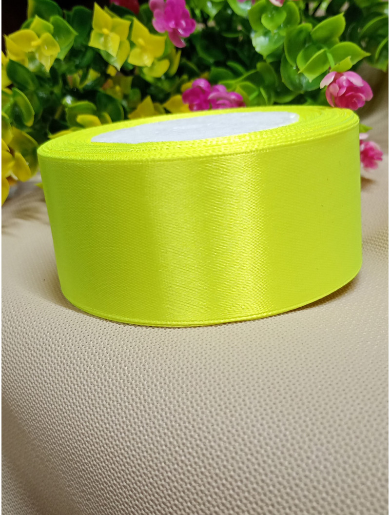 Атласна стрічка 4 см/рулон 23 метри/ салатовий неон