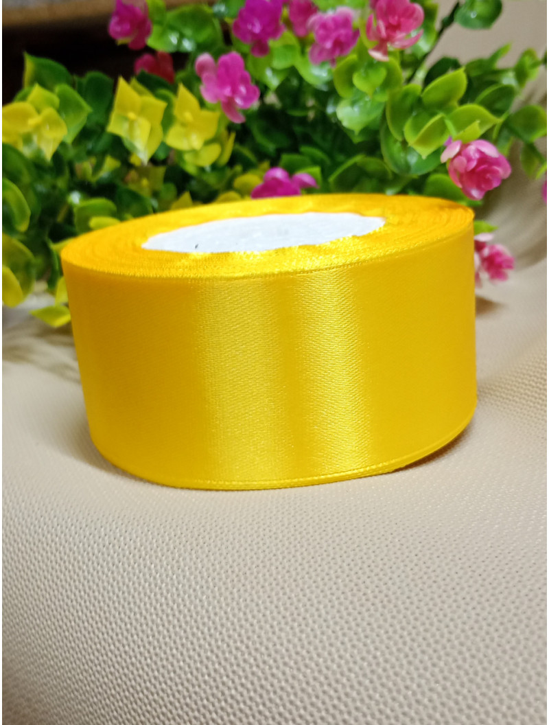 Атласна стрічка 4 см/рулон 23 метри/жовтий темний