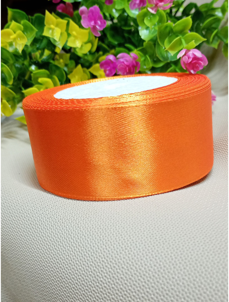 Атласна стрічка 4 см/рулон 23 метри/жовтогарячий