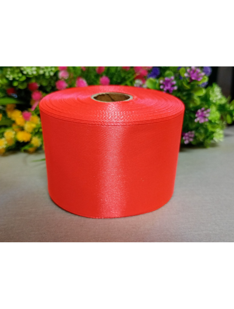 Атласна стрічка/5 см/23 метри/ отруйно жовтогарячий