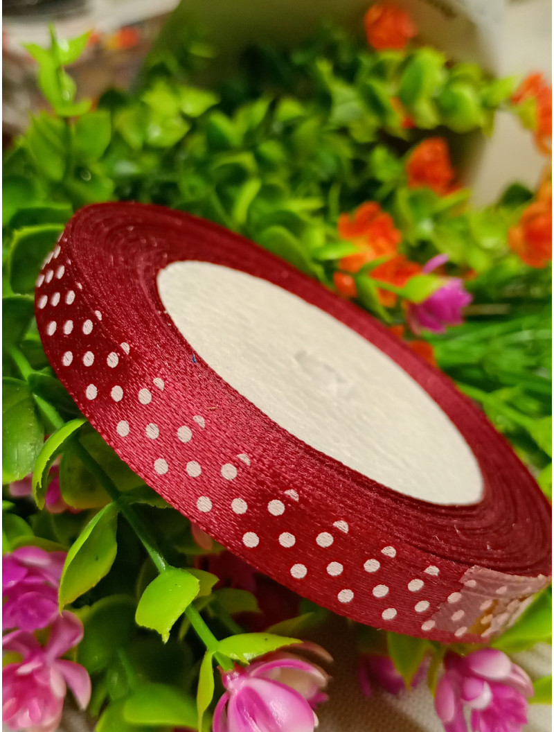 Атласна стрічка "горох"/бордовий/1 см/23 метри