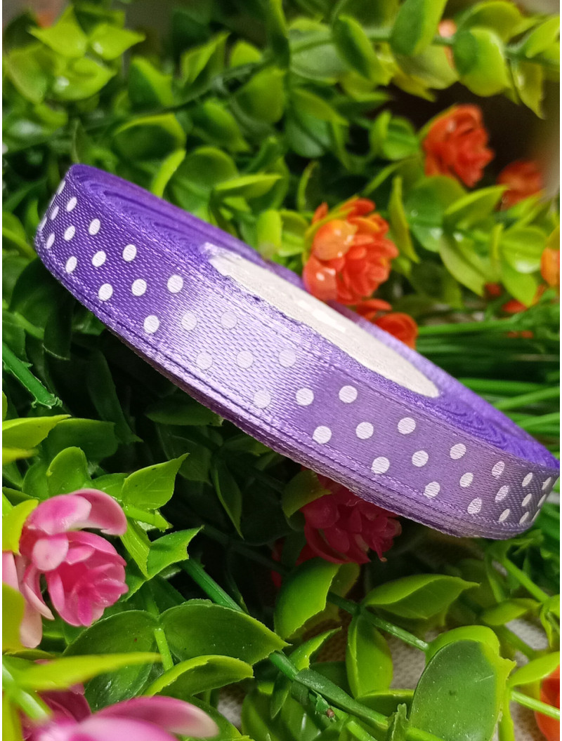 Атласна стрічка "горох"/бузковий/1 см/23 метри