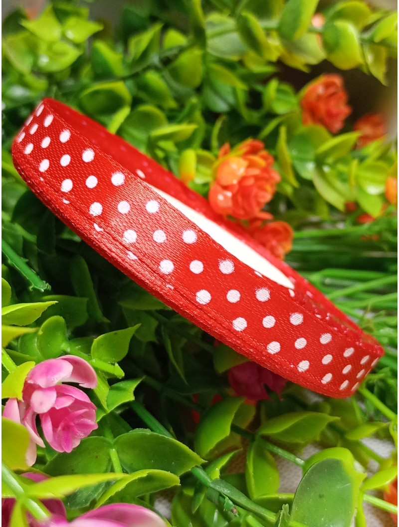 Атласна стрічка "горох"/червоний/1 см/23 метри