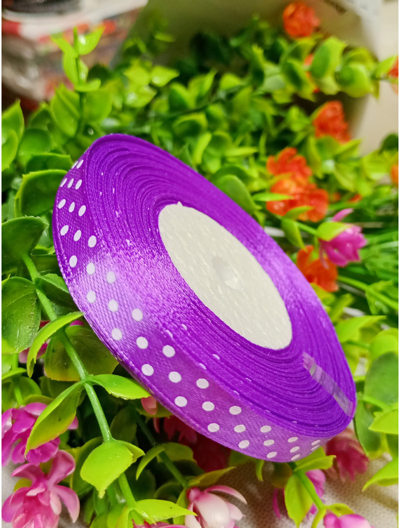 Атласна стрічка "горох"/фіолетовий/1 см/23 метри