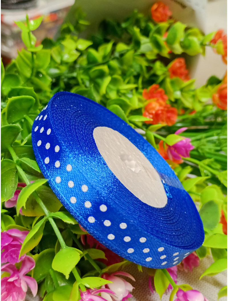 Атласна стрічка "горох"/ електрик/1 см/23 метри