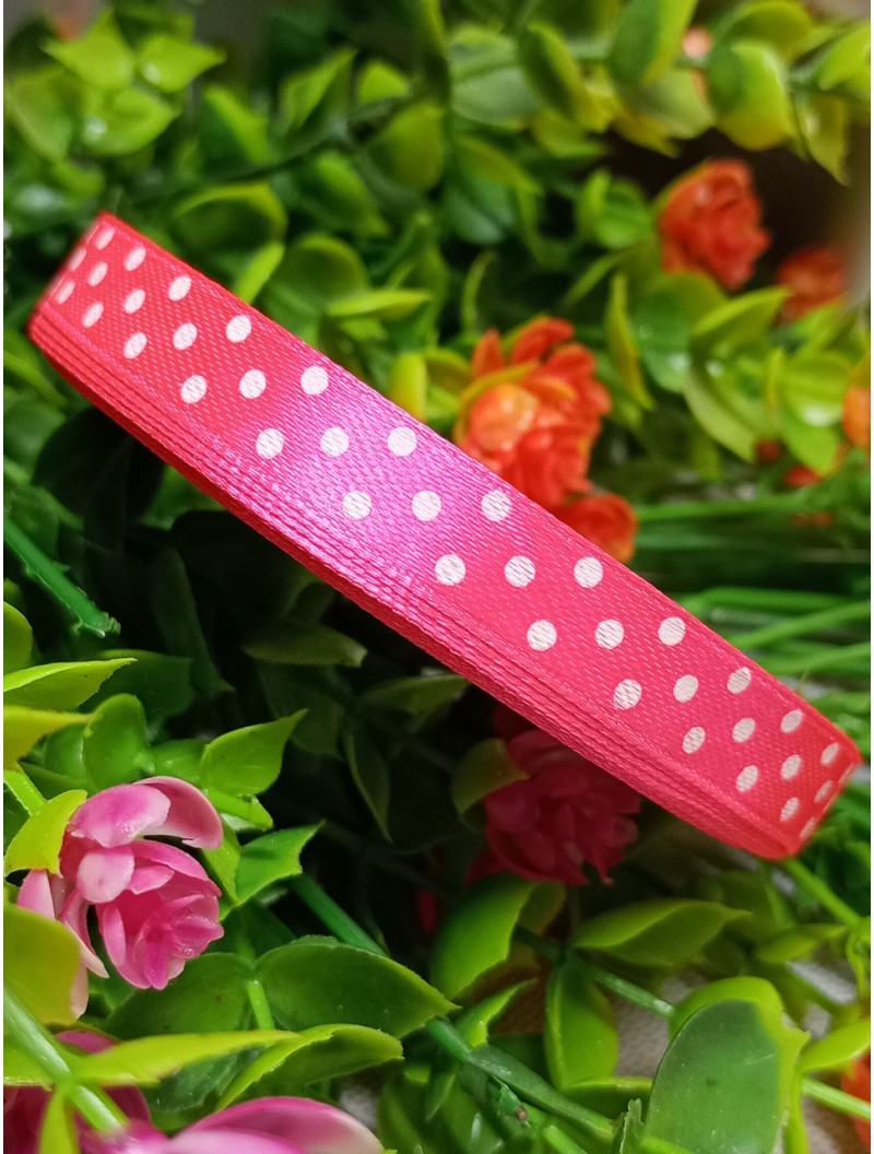 Атласна стрічка "горох"/рожевий яскравий/1 см/23 метри