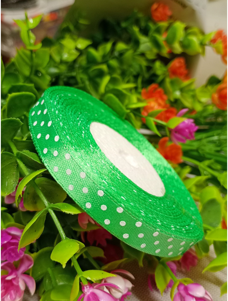 Атласна стрічка "горох"/ментол світлий/1 см/23 метри