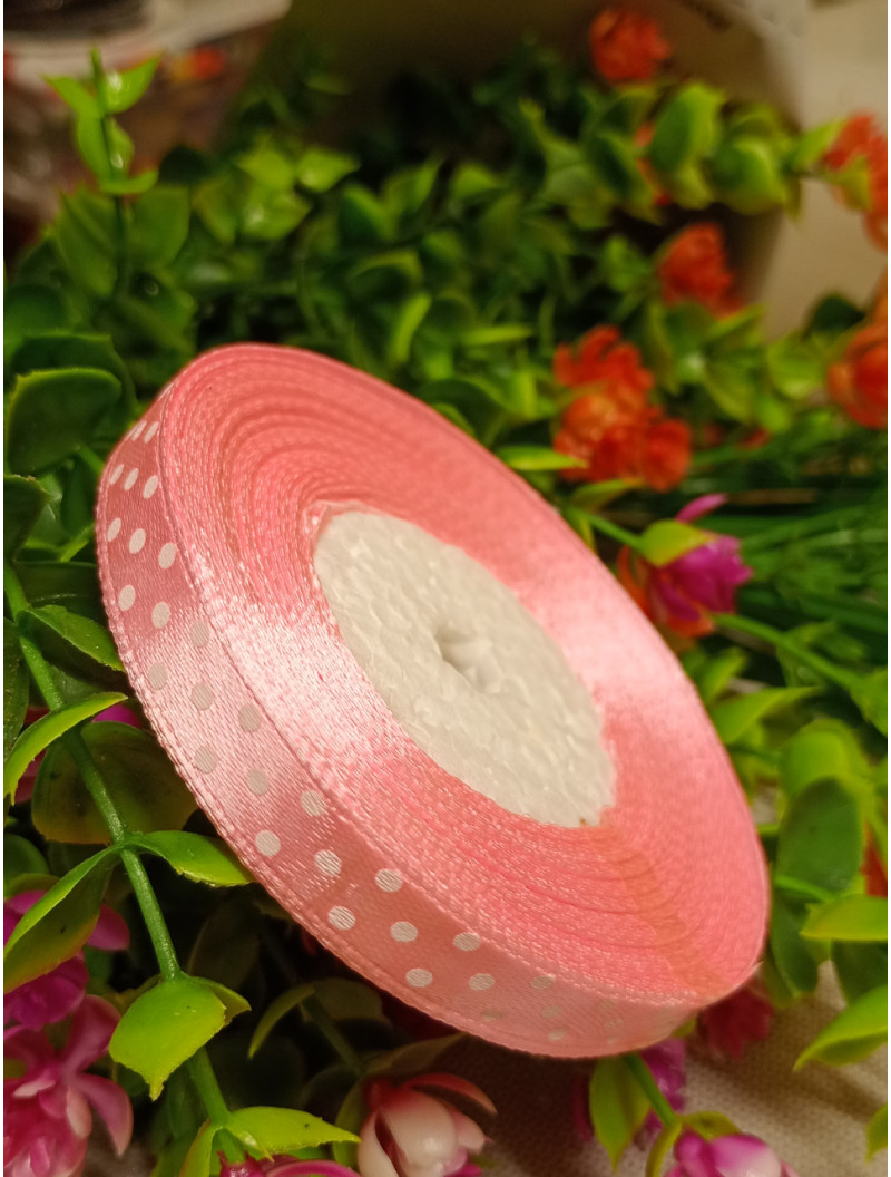 Атласна стрічка "горох"/рожевий/1 см/23 метри