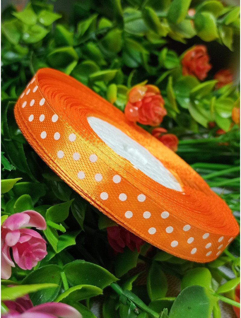 Атласна стрічка "горох"/жовтогарячий/1 см/23 метри