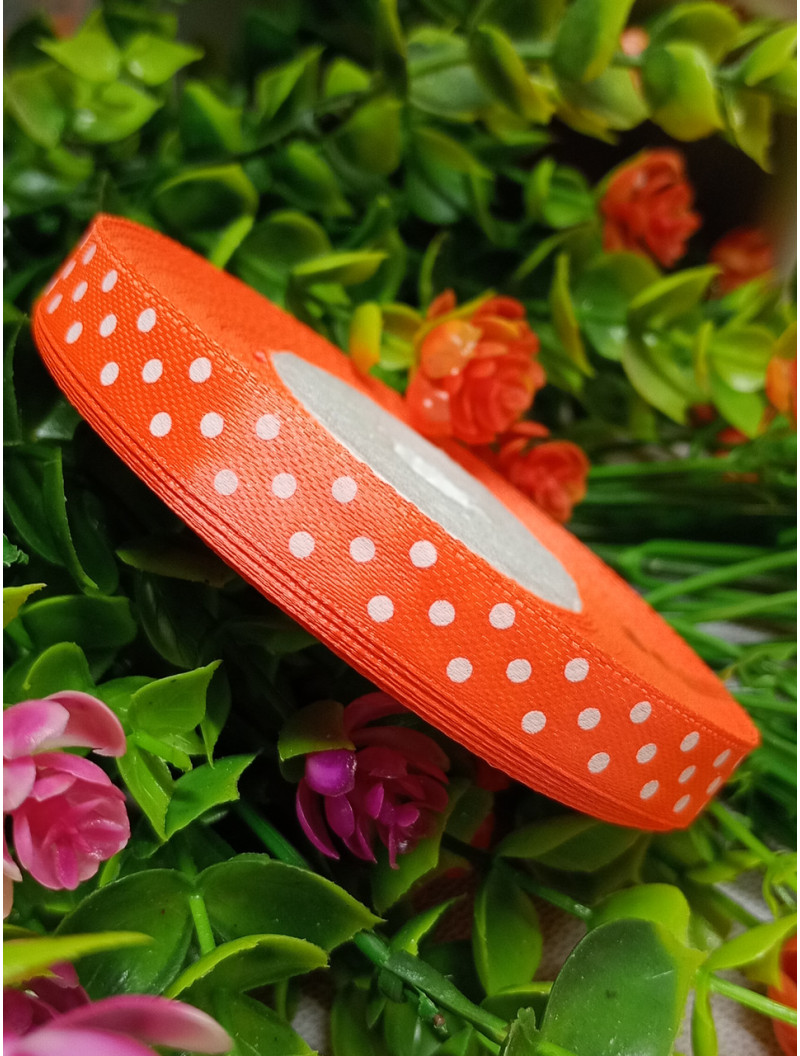 Атласна стрічка "горох"/жовтогарячий неон/1 см/23 метри
