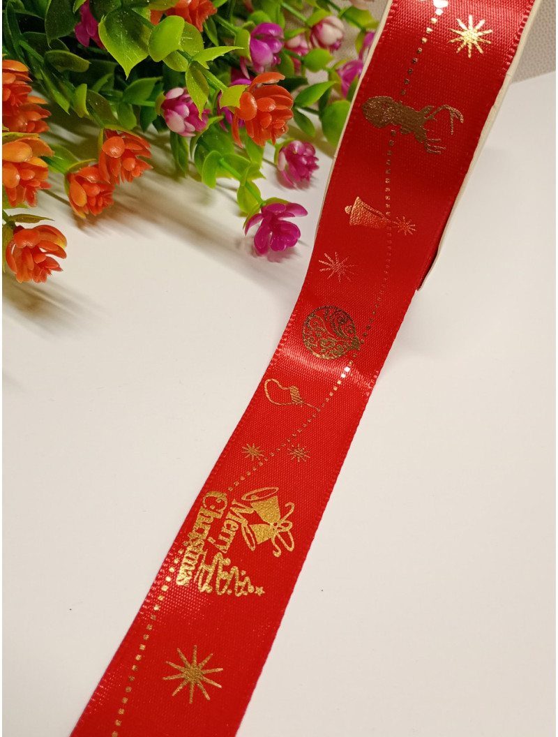Атласна стрічка "Новорічна"/2.5 см/червоний/1 метр