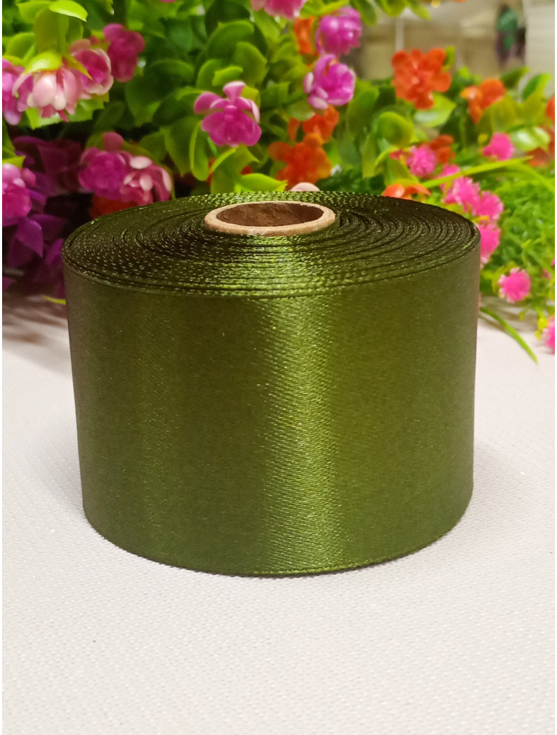 Атласна стрічка/5 см/23 метри/ оливковий