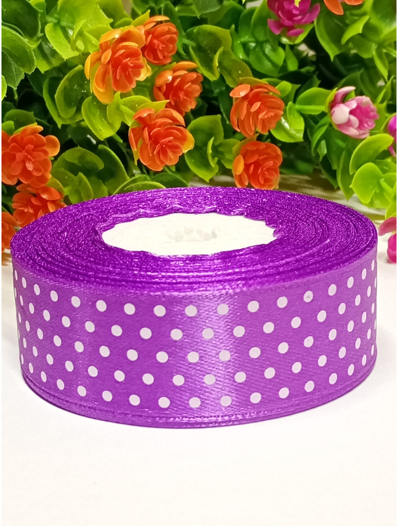 Атласна стрічка "горох"/2,5 см/23 метри/фіолетовий