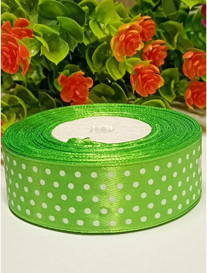 Атласна стрічка "горох"/ 2,5 см/23 метри/ салатовий