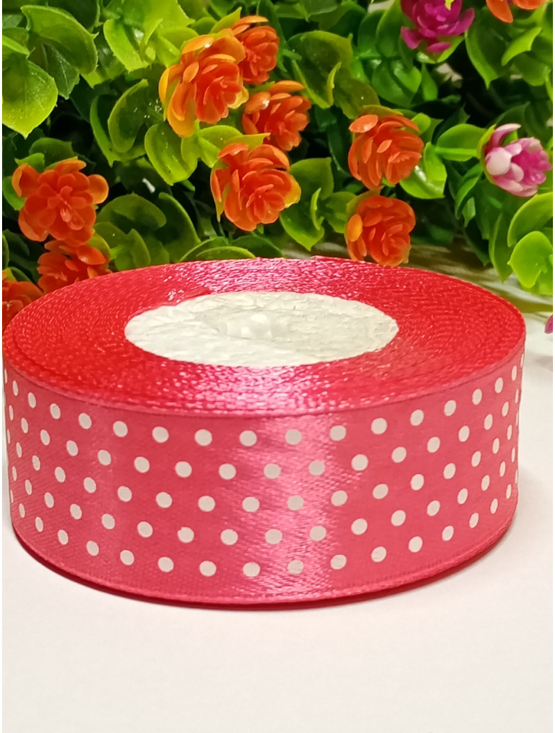 Атласна стрічка "горох"/2,5 см/23 метри/світло червоний