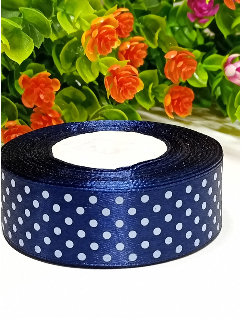 Атласна стрічка "горох"/2,5 см/23 метри/ темно-синій