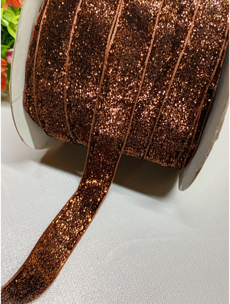 Оксамитова стрічка з люрексом/2 см/коричневий/1 метр