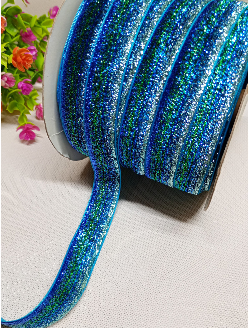 Оксамитова стрічка з люрексом/2 см/ райдужний синій/1 метр