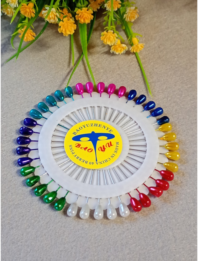 Булавка портновська/35 мм/З різнобарвною крапелькою/ Ціна вказана за пластину (40 шт.)