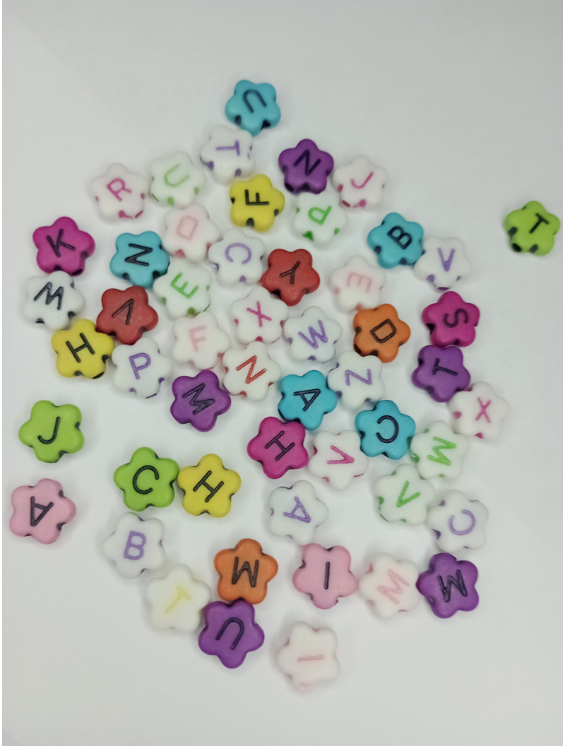 Бусини акрилові матові "алфавіт" Розмір — 10 мм. Паковання 10 грамів (прим.43 шт.) мікс