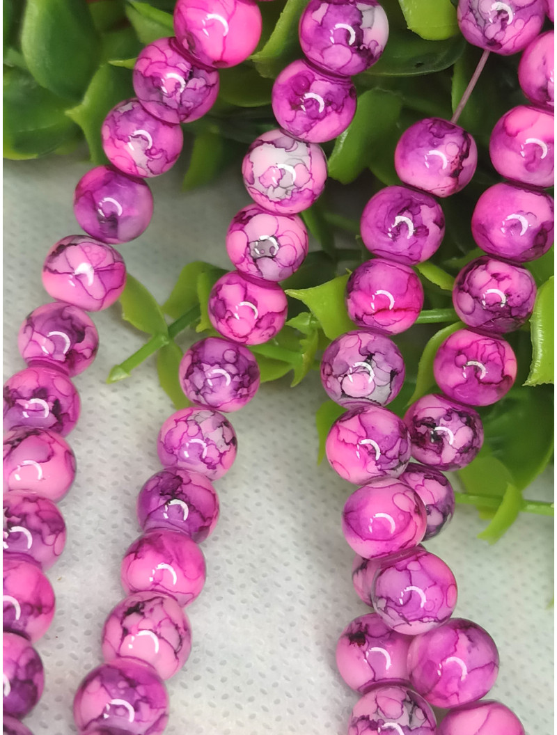 Бусини кераміка/8 мм/ ціна за 1 шт./малиновий мармуровий