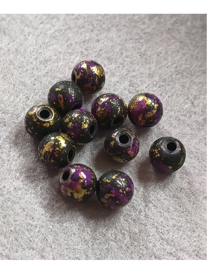 Бусини кераміка/8 мм/ ціна за 1 шт./ мармуровий фіолетово-золотий