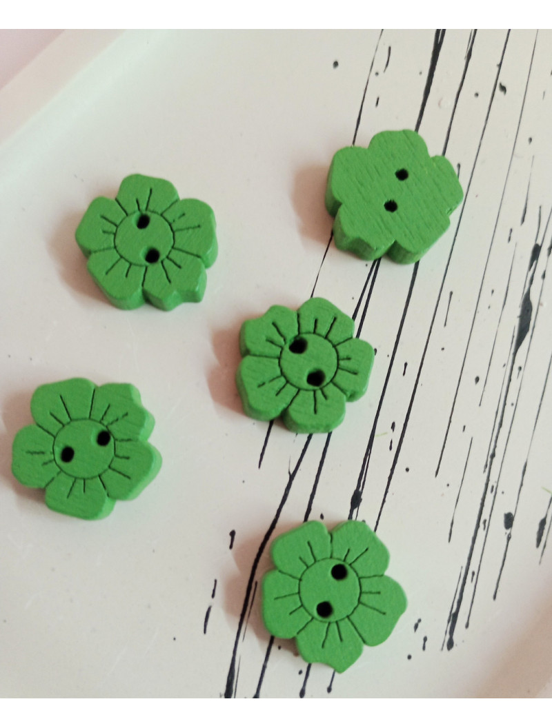 Дерев'яні ґудзики "ромашка". Розмір — 15 мм. Колір зелений. Ціна вказана за 1 шт.