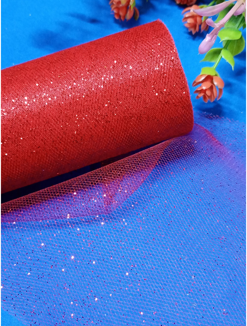 Фатин сітка/червоний з червоним блиском/ширина 14 см/1 метр