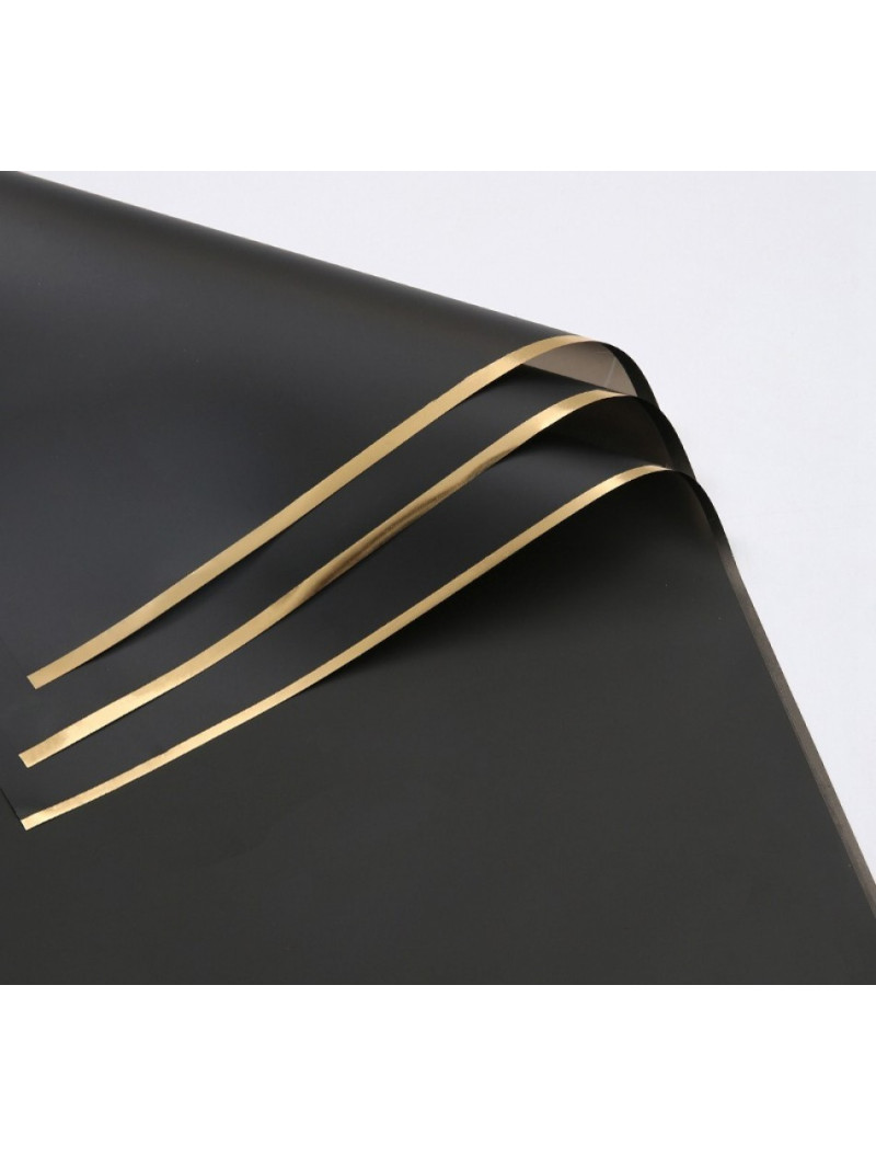 Калька (паковання для квітів)/58×58 см/упа. 2 аркуші / чорна із золотим кантом