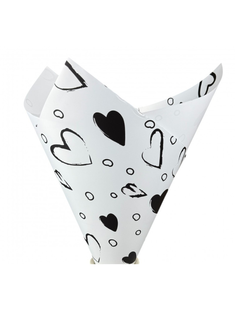 Калька (паковання для квітів)/58×58 см/упа. 2 аркуші / Love біло чорна