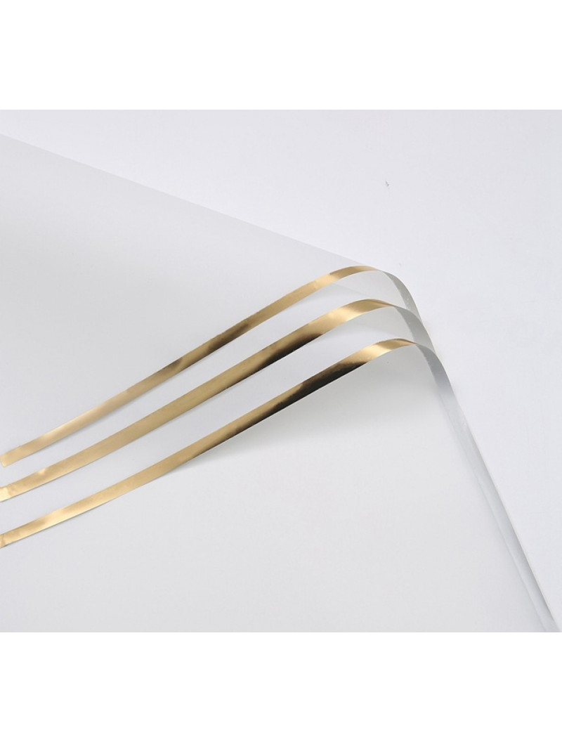 Калька (паковання для квітів)/58×58 см/упа. 2 аркуші/біла із золотим кантом
