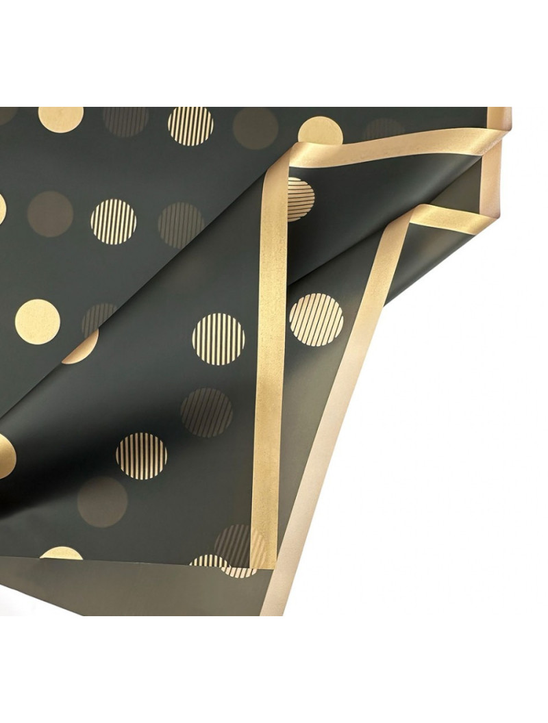 Калька (пакування для квітів) / 58*58 см / 2 аркуші/золотий на чорному горох