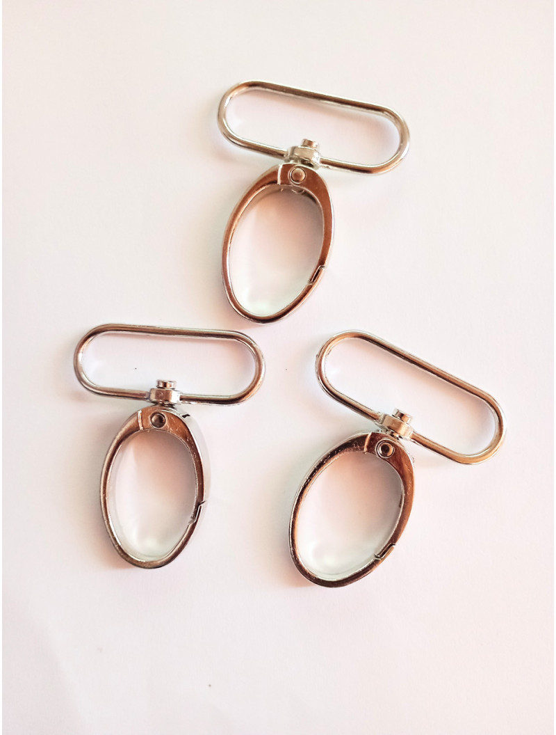 Карабін. Довжина - 5 см. Розмір внутрішнього кільця - 1,5×4 см. Колір - серебро. Ціна за 1 шт