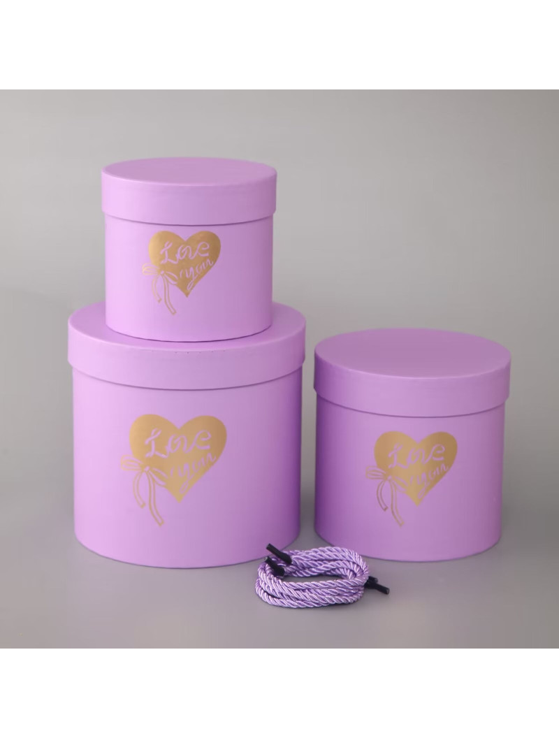 Коробка циліндр/3 в 1/фіолетовий. 1) 18*17 см 2) 15*14,5 см 3)13,5*12см