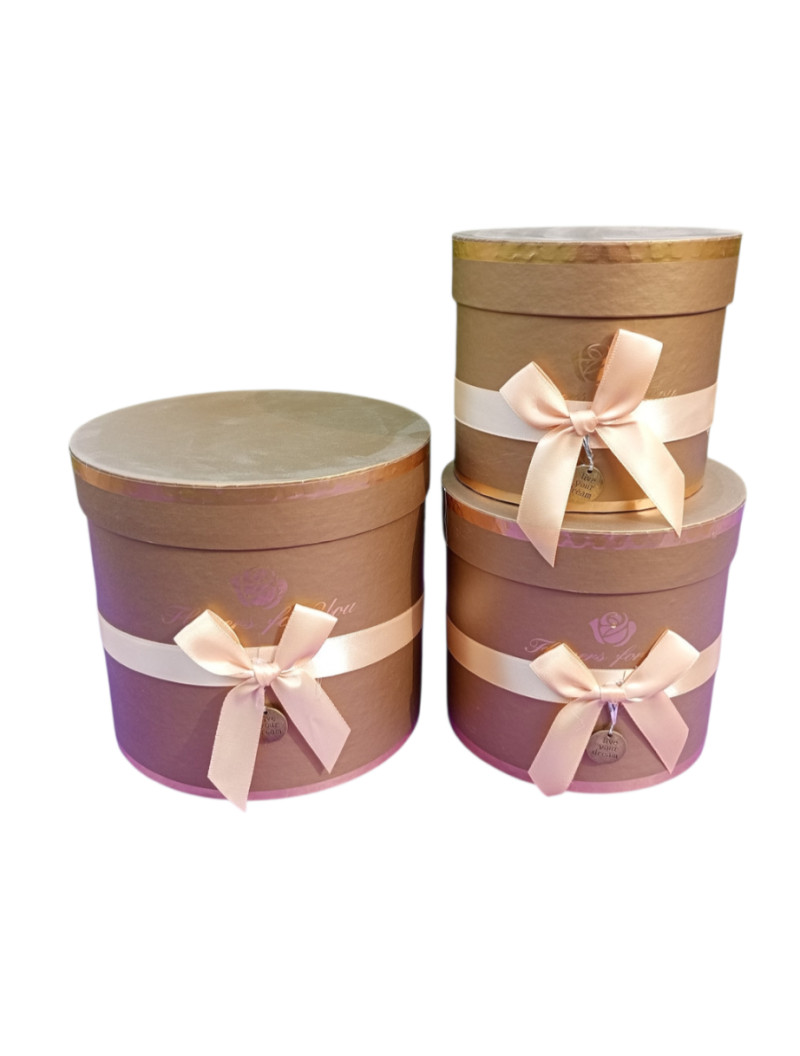 Коробка циліндр/3 в 1/ золотий 1) 18*17 см 2) 16*15 3) 13,5*13,5 см