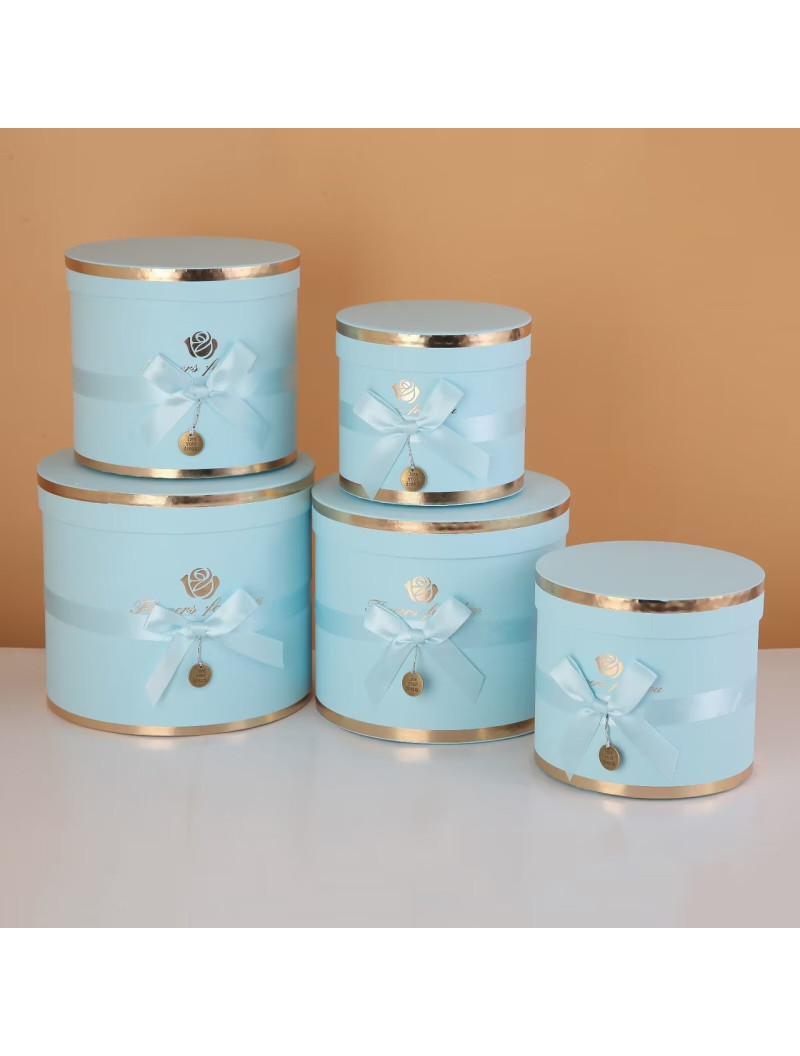 Коробка циліндр/5 в 1/блакитний Розмір 1) 22,5*22,5*19,5см 2) 20,5*20,5*18см 3)18,5*18,5*16,5см 4)16,5*16,5*15см 5) 14,5*14,5*13,5см