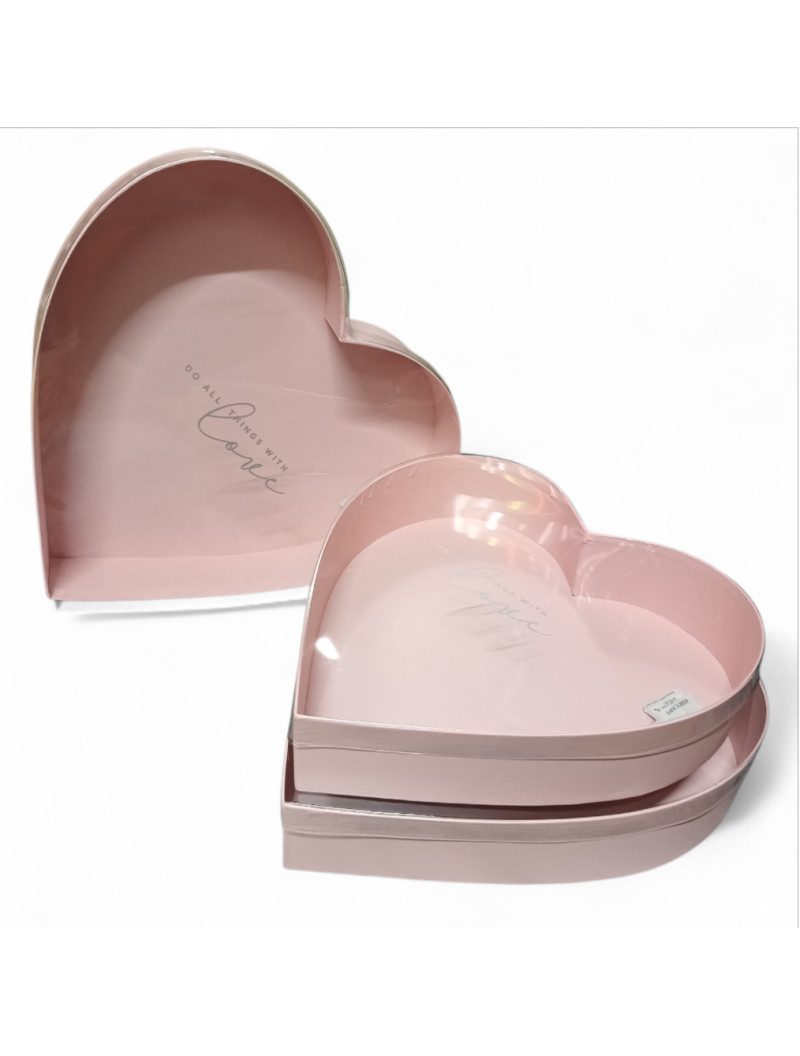 Коробка "серце" Набір 3 шт/З вікном/Рожево пудровий. Розмір: 1) 33*33*6,5 см. 2) 29,5*29,5*6 см 3) 26*26*5,5см
