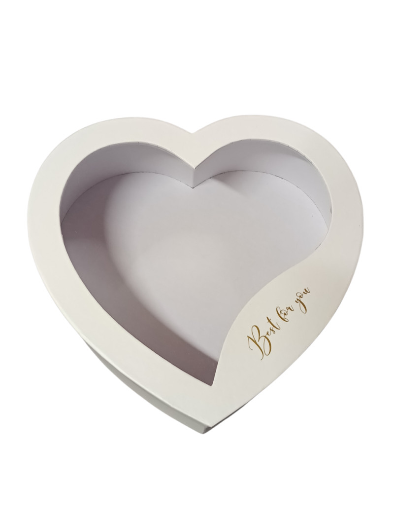 Коробка серце з вікном/біла/ Діаметр — 27.5 см. Висота — 9 см