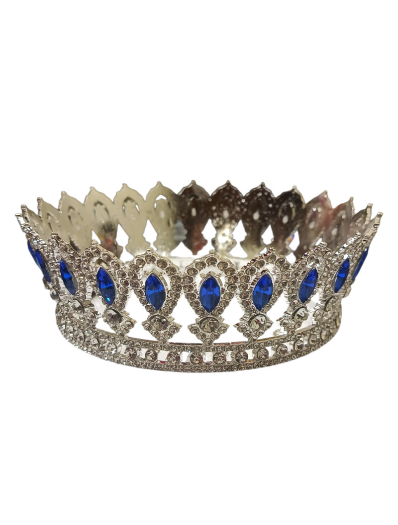 Корона металева/ діаметр 12,5 см/ Висота 5 см/сріб із синіми каменями