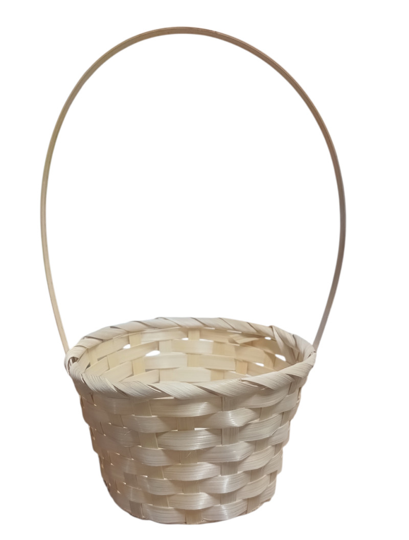 Кошик плетений/розмір XXS. Висота з ручкою 25 см. Діаметр — 15 см. Діаметр по дну 11 см. Глибина 8,5 см