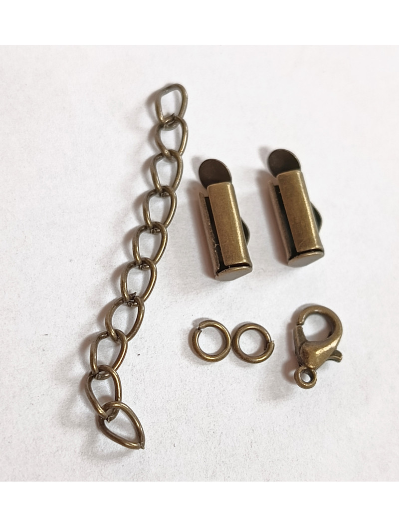 Набір фурнітури. Колір - Бронза. Карабін — 10 мм Ланцюжок — 5 см. Колічки — 6 мм. Слайдер — трубочка — 20 мм