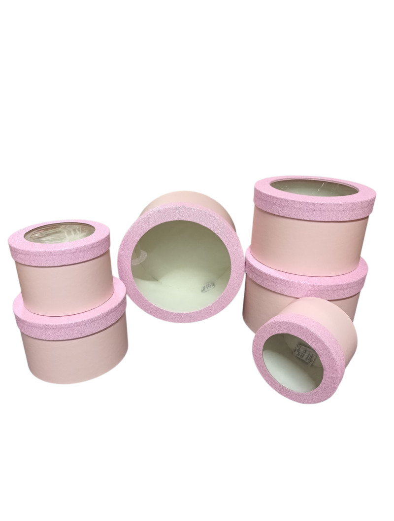 Набір коробок 6 в 1/кругла з вікном/рожевий/кришка блискітки/