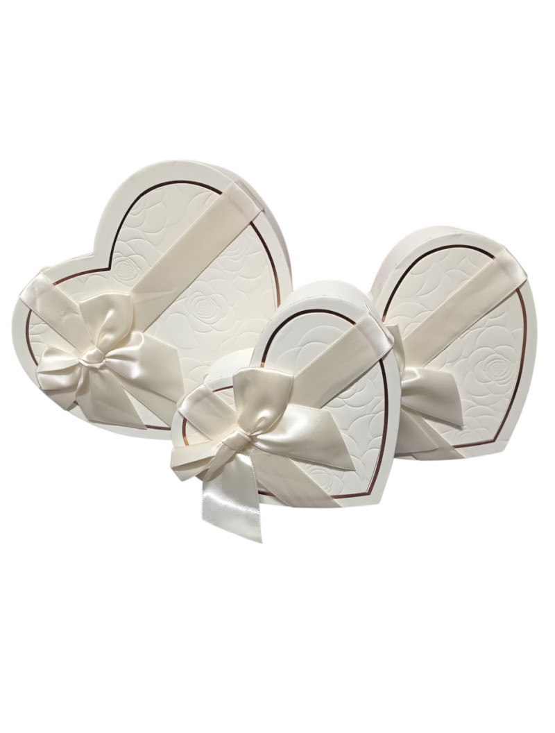 Набір коробок "серце"/ молочний із тисненням/3 в 1 Набір коробок "серце"/ молочний із тисненням/3 в 1