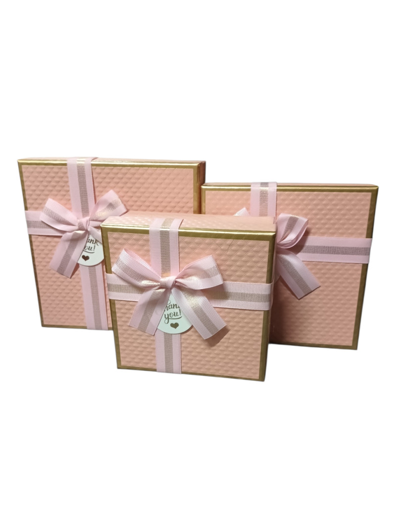 Набір подарункових коробок "квадрат"/рожевий/3 в 1