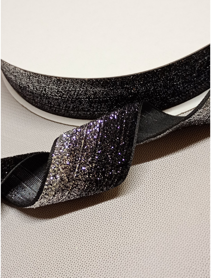 Оксамитова стрічка з люрексом/4 см/чорний зі сріблом/1 метр